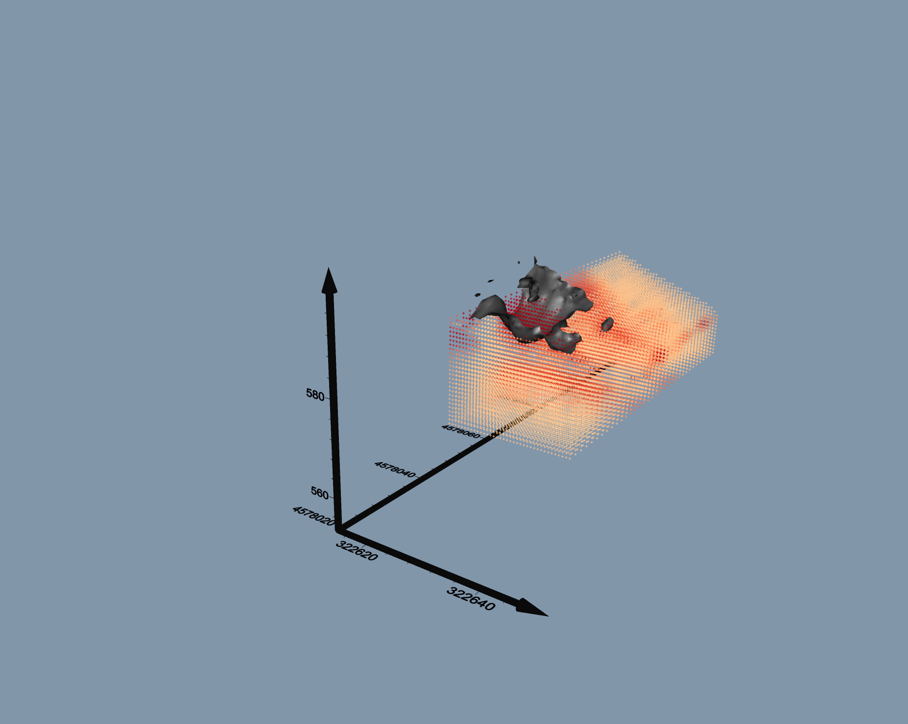 One recent example of the 3D modelling we have done with the data collected via electrical resistivity is shown below. The higher intensity red is higher conductivity, which at this site correlates to the failing material. The black is the approximate interface between the stable ground and the landslide material.